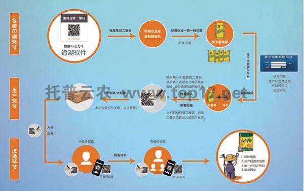 托普農(nóng)作物種子二維碼標(biāo)簽追溯系統(tǒng)流程: