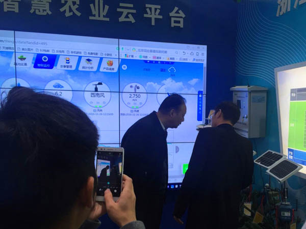 11月26日,浙江省人大常委會黨組書記、副主任茅臨生參觀托普云農(nóng)展位。茅臨生饒有興致地參觀了托普云農(nóng)展位的各區(qū)域,詳細(xì)詢問了托普云農(nóng)農(nóng)業(yè)“四情”監(jiān)控系統(tǒng)、設(shè)施農(nóng)業(yè)監(jiān)控系統(tǒng)、水肥一體化監(jiān)控系統(tǒng)、智慧農(nóng)業(yè)云平臺等系統(tǒng)平臺的相關(guān)工作原理和實施效果。茅臨生還來到儀器展示區(qū),由托普云農(nóng)展區(qū)負(fù)責(zé)人為其介紹了傳感器、土壤墑情監(jiān)控系統(tǒng)硬件、農(nóng)藥殘留速測儀等智能硬件設(shè)備。這次參觀,充分感受到茅臨生對浙江智慧農(nóng)業(yè)發(fā)展的關(guān)注和支持;鼓舞了托普云農(nóng)員工的士氣,激發(fā)了大家的工作熱情,托普云農(nóng)將繼續(xù)為浙江省現(xiàn)代農(nóng)業(yè)建設(shè)貢獻(xiàn)力量。