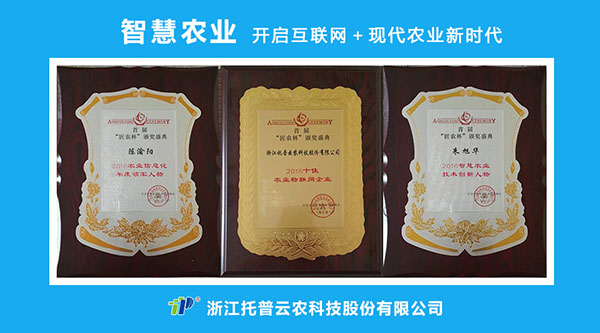 此次峰會,托普云農共獲得三項大獎:托普云農董事長陳渝陽榮膺“2016農業信息化年度領軍人物”、常務副總朱旭華榮膺“2016智慧農業技術創新人物”、托普云農獲“2016十佳農業物聯網企業”稱號。
