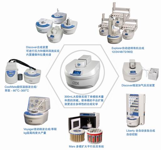 2003年CEM推出大型環(huán)形單模合成反應(yīng)器 Discover,實(shí)現(xiàn)了單模諧振腔從30mL到300mL的擴(kuò)展,Auto-Tuning 自動(dòng)改變多耦合(11通道)的專利技術(shù),通過(guò)環(huán)形單模多通道進(jìn)行聚焦輻射,行程能勢(shì)阱效應(yīng),提高能量耦合均勻性,不受反應(yīng)物體積尺寸和極性變化的影響,而且可提高大規(guī)模反應(yīng)的轉(zhuǎn)化率。確保體積變化時(shí)反應(yīng)條件和結(jié)果的重復(fù)性和再現(xiàn)性。多通道能量耦合使控制精度提高10-40倍,自動(dòng)調(diào)控密度0-900W/L。實(shí)現(xiàn)了單模技術(shù)量和質(zhì)的突破,使單模的平臺(tái)擴(kuò)展到更適合多樣性的合成化學(xué),遠(yuǎn)勝于駐波型單通道單模微波。2003年7月經(jīng)ACS推薦,榮獲R&D100技術(shù)創(chuàng)新大獎(jiǎng)。