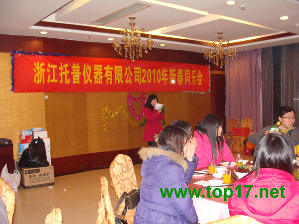 溫馨的時刻,美好的夜晚,在這辭舊迎新之際,浙江托普儀器有限公司迎來了2010年新春聯歡晚會。連日的陰雨天氣沒有阻隔我們舉杯暢飲的瀟灑,新年的步步逼近讓我們徜徉于歡樂喜慶的海洋,一次次活動,讓我們釋放著青春的激情,一聲聲吶喊,將現場的氣氛推至高潮。我們笑了,碩果累累的2009年結束了,一年的努力,我們用銷售額證明著浙江托普的快速成長,2010年,我們將更加充滿信心,迎接新一輪的挑戰。