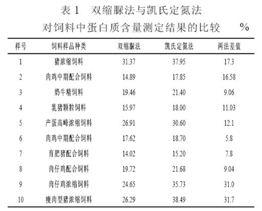 雙縮脲法和凱氏定氮法測定飼料中蛋白質(zhì)含量的比較研究