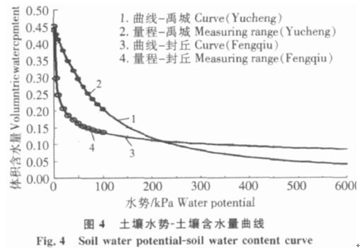 繪制禹城站、封丘站土壤水勢-土壤含水量曲線(圖4) 。