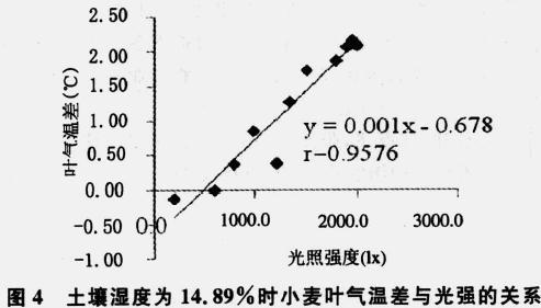 不同土壤濕度下小麥葉氣溫差對光照強度的反應及對蒸騰的影響