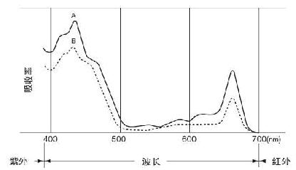 從圖中可以看出,葉綠素在藍(lán)色區(qū)域(400—500nm)和紅色區(qū)域(600—700nm)范圍內(nèi)吸收達(dá)到了峰值,但在近紅外區(qū)域卻沒有吸收。也就是說,不同波長(zhǎng)的光線,葉綠素的吸收量是不同的。這也正好符合了我們的要求,通過不同的吸收量,來測(cè)出spad值。