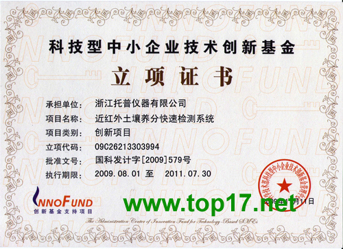 熱烈祝賀浙江托普儀器有限公司自主研發的近紅外土壤養分速測系統獲得科技型中小企業技術創新基金!