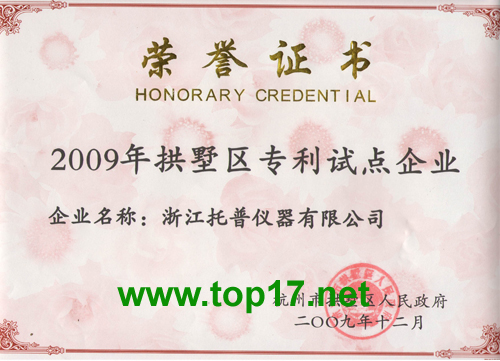 恭喜浙江托普儀器有限公司被評為2009年拱墅區(qū)專利試點企業(yè)!