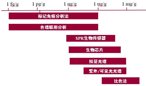 快速篩查技術從大方面分,主要分為生物分析技術和化學分析技術。其中生物分析技術又可以分為免疫學技術、生物芯片技術和生物傳感器技術;化學分析技術又可以分為化學檢測試劑盒、質譜、光譜檢測技術和電化學傳感器。