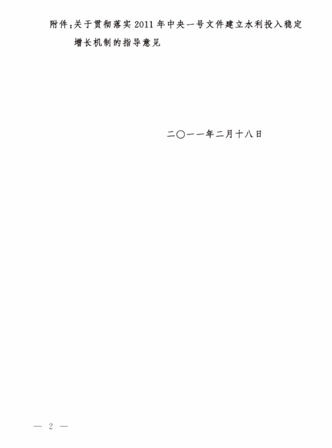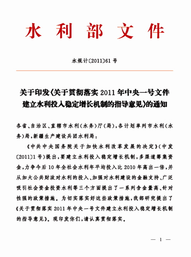 2011年中央一號文件建立水利投入穩定增長機制主要內容