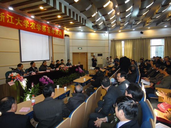2010年12月19日上午,農學系在美麗的浙大華家池校區舉行系友代表大會,慶祝百年華誕。150多位系友代表和教師出席了大會,農學系系友、浙江省政協主席周國富專門向大會發來賀信。農學系96歲的老教授、原浙江農業大學副校長陳錫臣先生、88歲的老教授季道藩先生、86歲的老教授申宗坦先生興致勃勃地參加了慶祝大會。原浙江農業大學校長陳子元、夏英武,原浙江農業大學副校長丁元樹、副書記鄒先定,農學系原系主任丁守仁、總支書記程子道等應邀出席了會議。華中農大副校長張獻龍教授、河北農大副校長馬峙英教授、南京農大農學院黨委書記李昌新教授、中國農科院棉花研究所所長喻樹迅研究員、國家實驗室主任、中國水稻研究所錢前研究員等兄弟單位的嘉賓到會祝賀。