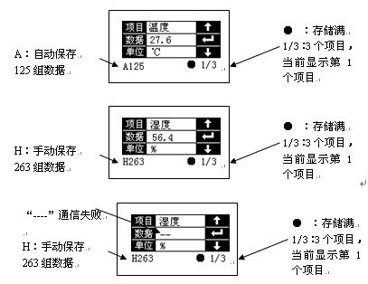 5、手動(dòng)與自動(dòng)切換:開(kāi)機(jī)默認(rèn)手動(dòng)保存數(shù)據(jù),屏幕右下角顯示H,需按保存鍵保存測(cè)試參數(shù),如需切換儲(chǔ)存狀態(tài)應(yīng)按自動(dòng)/手動(dòng)按鈕,自動(dòng)狀態(tài)下顯示A,系統(tǒng)按照預(yù)設(shè)定的時(shí)間存儲(chǔ)參數(shù);每存儲(chǔ)一組數(shù)據(jù),屏幕左下角顯示數(shù)據(jù)加一。