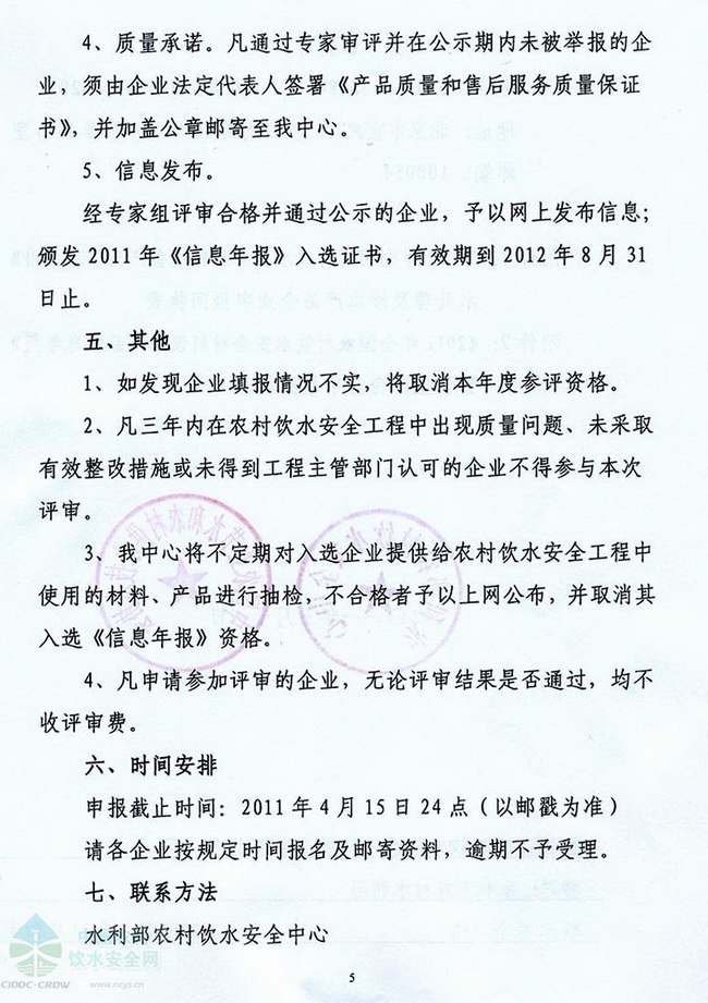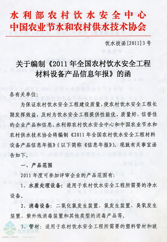 關(guān)于編制《2011年全國(guó)農(nóng)村飲水安全工程材料設(shè)備產(chǎn)品信息年報(bào)》的函