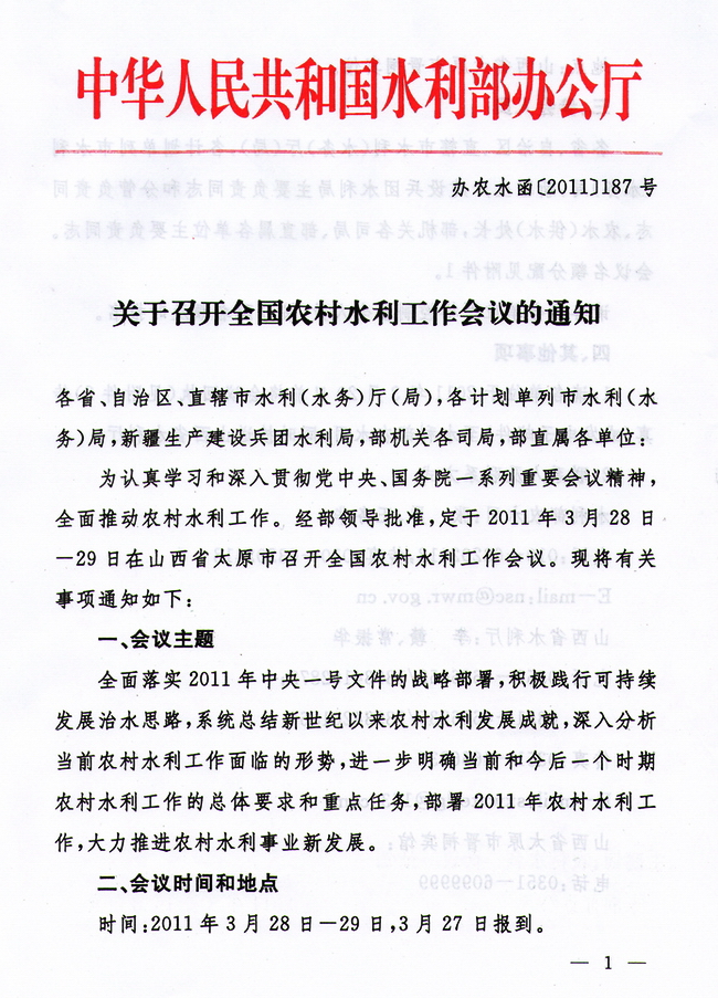 您現(xiàn)在的位置:中國農(nóng)業(yè)儀器網(wǎng) > 行業(yè)動態(tài) >關(guān)于召開全國農(nóng)村水利工作會議的通知