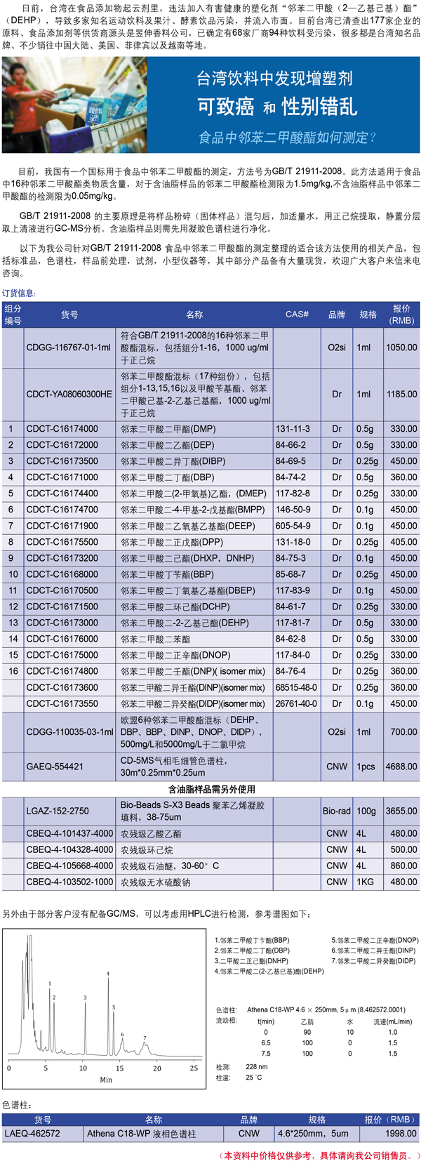 您現(xiàn)在的位置:中國農業(yè)儀器網(wǎng) > 行業(yè)動態(tài) >食品飲料中塑化劑的檢測方法及配套耗材