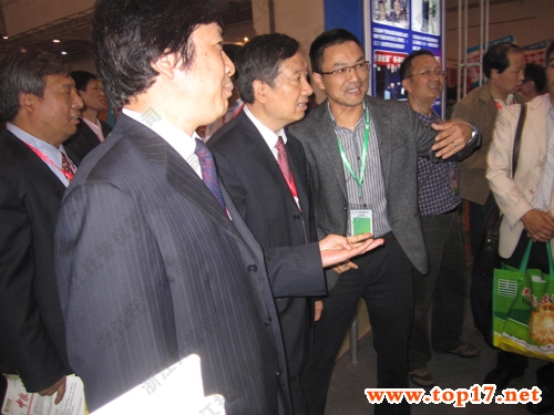 圖為:托普總經(jīng)理陳渝陽先生陪同張延秋局長(zhǎng)等一行領(lǐng)導(dǎo)參觀托普展位
