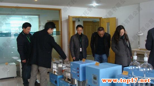 圖為:托普儀器相關(guān)領(lǐng)導(dǎo)陪同眾位評審專家參觀樣品室