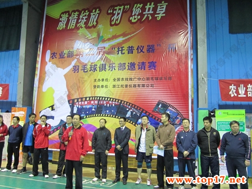 由全國農(nóng)技推廣中心羽毛球俱樂部主辦、浙江托普儀器有限公司全程贊助承辦的第二屆農(nóng)業(yè)部“托普儀器”杯羽毛球邀請(qǐng)賽2011年12月24日在北京貝特羽毛球館隆重舉行。全國農(nóng)技中心陳生斗主任為本次活動(dòng)開幕式并致辭。