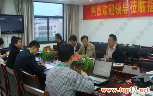 首先,朱旭華經理圍繞了我公司的發展現狀及我公司產品及技術的發展狀況進行展開介紹。朱經理先后介紹了公司的發展歷程、公司所獲得榮譽、公司的科技團隊,公司生產的主要產品以及我公司所取得的產品著作權和產品專利,讓各位領導對托普儀器公司有了一個全面的了解。