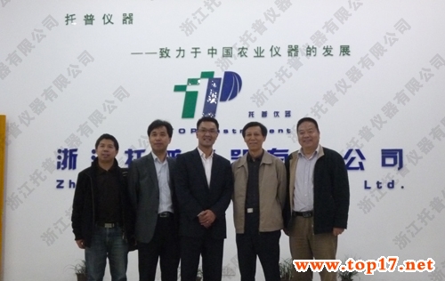 2012年4月17日,浙江省農業廳副巡視員、人事處吳金良處長、農業廳農業作物局潘偉峰副局長、農業廳辦公室周祥勝副主任、浙江省農業科學院數字農業研究所徐志福主任一行蒞臨托普指導工作,托普儀器陳渝陽總經理和朱旭華副總經理等熱情接待了各位領導。