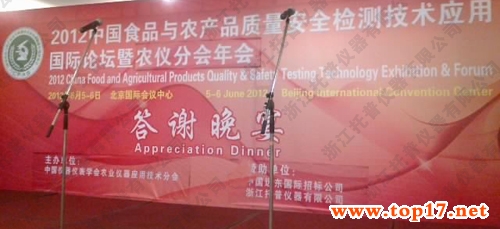 最后,浙江托普儀器有限公司與中國遠東國際招標公司協同贊助了“中國食品與農產品質量安全檢測技術應用國際論壇農儀分會年會答謝晚宴,此次展覽會畫上了圓滿的句號。