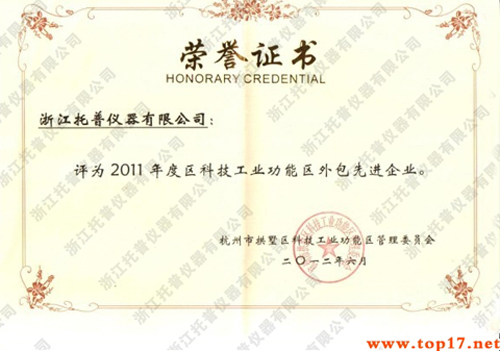 熱烈祝賀浙江托普儀器有限公司被評為2011年度區科技工業功能區外包先進企業!