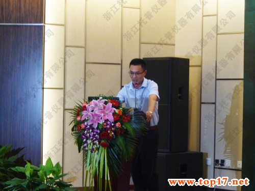 圖為:托普儀器陳渝陽總經理作為企業代表在會上做詳細報告