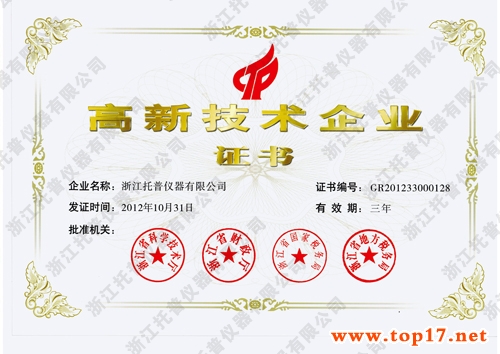 祝賀浙江托普儀器有限公司被認(rèn)定為“國家高新技術(shù)企業(yè)”