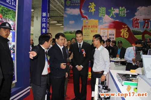 圖為:全國農技推廣中心杭大鵬書記等領導參觀公司展位