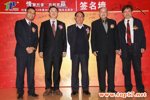 圖為:陳子元院士與高祥照處長在托普經銷商見面會簽名墻前合影留念