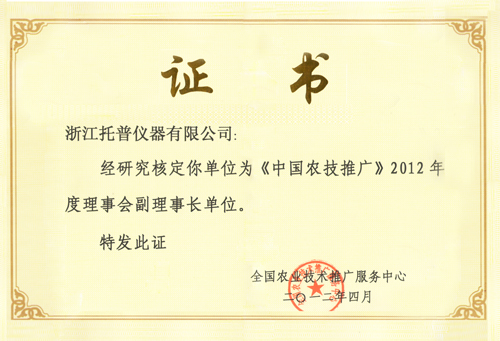 托普儀器連續兩年被認定為理事長單位,積極配合中國農技推廣協會的工作,大力推進基層農技推廣體系改革與建設,全力服務中國特色農業現代化建設。