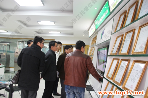 參觀結(jié)束后,陳總經(jīng)理還為各位領(lǐng)導(dǎo)詳細講解了托普儀器物聯(lián)網(wǎng)系統(tǒng)在設(shè)施園藝、果園、墑情監(jiān)測、農(nóng)場等中的實際應(yīng)用以及以及由托普儀器協(xié)助完成的成功案例。吳處長對托普如今的物聯(lián)網(wǎng)研發(fā)技術(shù)表示了肯定,他說到,如今要做好現(xiàn)代化農(nóng)業(yè)建設(shè),就需要像托普儀器這樣有前瞻性的企業(yè)起到良好的帶頭作用。最后,吳處長等領(lǐng)導(dǎo)希望托普儀器為浙江省農(nóng)業(yè)現(xiàn)代化多出力,并鼓勵托普要堅持走信息化發(fā)展道路,努力研發(fā)新型農(nóng)業(yè)技術(shù),促進浙江省農(nóng)業(yè)現(xiàn)代化的發(fā)展。