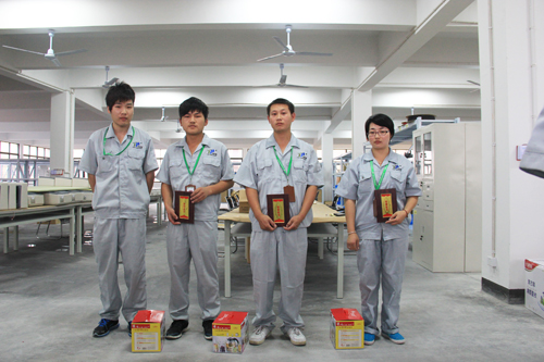比賽結束后,公司領導為獲獎選手頒發了榮譽證書及獎品,要求他們要把現在的技能保持并增長下去,并且和同事溝通交流工作技巧和工作經驗,為公司生產提高效率,提升品質做出貢獻。