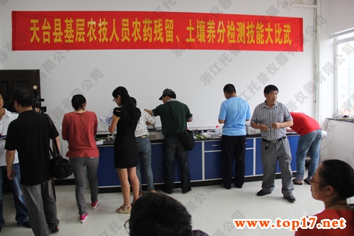 2013年6月7日,在天臺縣農業局新農技大樓里舉行了一場別開生面的比賽:農藥殘留、土壤養分檢測技能大比武。參賽人員為來自天臺縣各個鄉鎮的基層農技工作人員以及天臺縣部分農業企業的農殘檢測員共計30余人。
