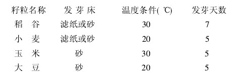 1.2溫度。 適宜的溫度是糧食籽粒發芽的必要條件。適宜的溫度是酶的活性增強,呼吸作用增大及物質轉化的必要條件,溫度過高會抑制籽粒的正常生理活動,過低會導致發芽緩慢。通常糧食籽粒的發芽標準對溫度條件的要求不似種子那么苛刻,恒定溫度即可。