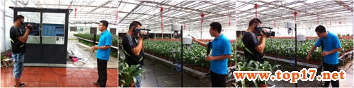 記者:所謂物聯(lián)網(wǎng),其實(shí)簡(jiǎn)單的說(shuō)就是物物相連,互相感知。大家看我身后的一組探頭(托普儀器固定式無(wú)線農(nóng)業(yè)氣象綜合監(jiān)測(cè)站),包括這個(gè)是測(cè)量溫度的,這個(gè)是測(cè)量土壤墑情的,上面還有測(cè)量二氧化碳濃度的,測(cè)量光照強(qiáng)度的。那這些測(cè)量數(shù)據(jù)都會(huì)上傳到我身后的中央控制室內(nèi)的計(jì)算機(jī)里,通過(guò)計(jì)算機(jī)的計(jì)算,再控制風(fēng)扇、噴灌…這些設(shè)備的運(yùn)轉(zhuǎn)。