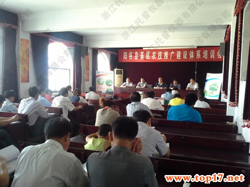 2013年9月14日,山東省聊城市“陽谷縣基層農(nóng)技推廣體改項(xiàng)目?jī)x器設(shè)備發(fā)放培訓(xùn)會(huì)議”在陽谷縣農(nóng)業(yè)局會(huì)議室召開,農(nóng)業(yè)局楊艾勤書記、農(nóng)技推廣中心王振東副主任以及15個(gè)鄉(xiāng)鎮(zhèn)農(nóng)技站站長(zhǎng)以及技術(shù)員,共計(jì)40余人出席會(huì)議。托普儀器作為儀器提供商出席會(huì)議。