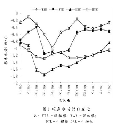 2.1 葡萄根系水勢(shì)與含水量的日變化