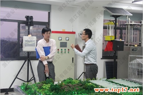 圖為:托普儀器陳渝陽總經理在向支巨振處長介紹“智慧農業”
