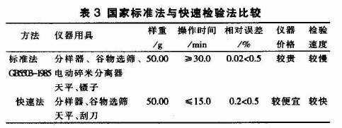 由表1,2可知,碎米含量檢驗,快速法與標準法比較,結果誤差,標一早米為+0.6%,標一晚米為一0.4%,均小于土2%,檢驗時間縮短20 min。大米碎米含量快速法具有誤差小,速度快、時間短的優點,可應用于大米生產、銷售中碎米含量的檢驗與控制。