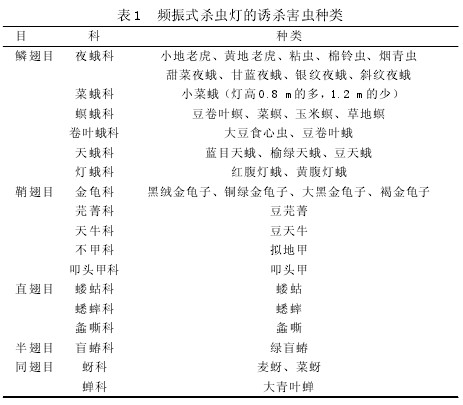 1.誘殺害蟲種類多主要涉及鱗翅目、鞘翅目、直翅目、半翅目、同翅目、雙翅目、膜翅目7個目17個科36種害蟲,其中鱗翅目害蟲占總量的70%以上,其次是鞘翅目(見表1)。