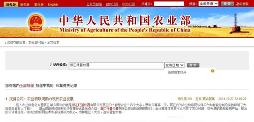 《托普公司:農業物聯網助力現代農業發展》一文由農業部網站公開發布,全文如下: