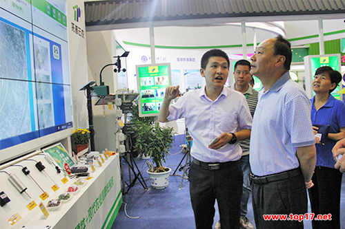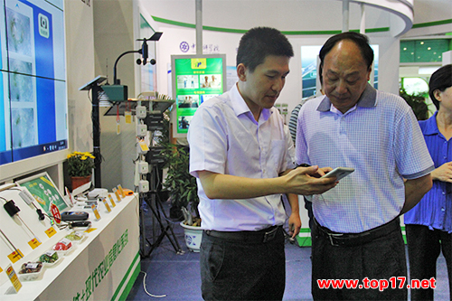 會議期間,安徽省政協副主席兼省政府秘書長邵國荷先生、安徽農委趙穎南總農藝師一行蒞臨8號館電子商務及物聯網展區觀摩托普云農自主研發生產的農業物聯網綜合服務平臺。重點詢問了托普云農所展出的以色列作物本體傳感器和植物營養測定儀等系統設備的相關情況。陳曦經理為其一一介紹。