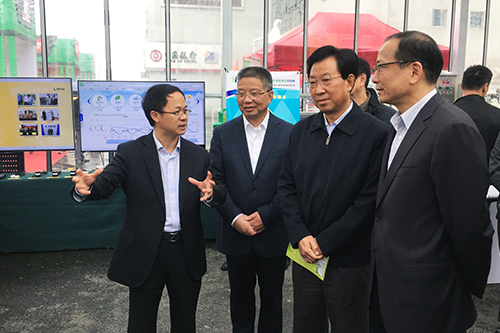 圖為:王輝忠副書(shū)記(右二)、黃旭明副省長(zhǎng)(右三)、史濟(jì)錫廳長(zhǎng)(右一)蒞臨托普展區(qū)