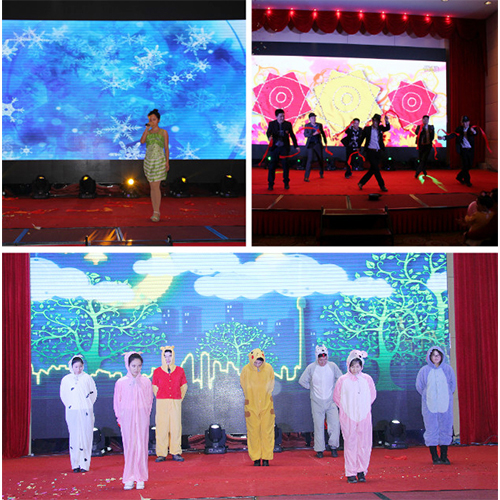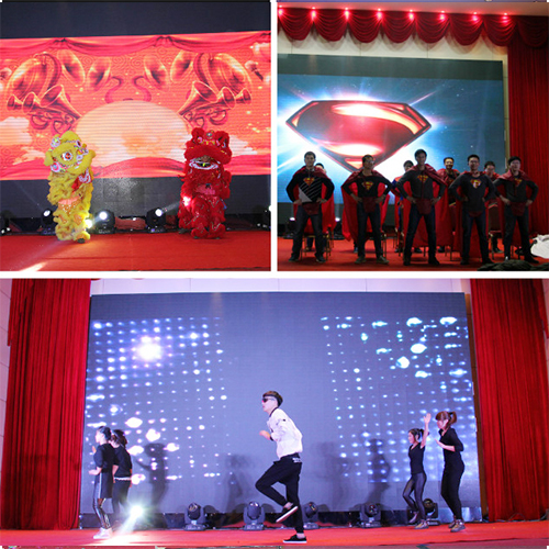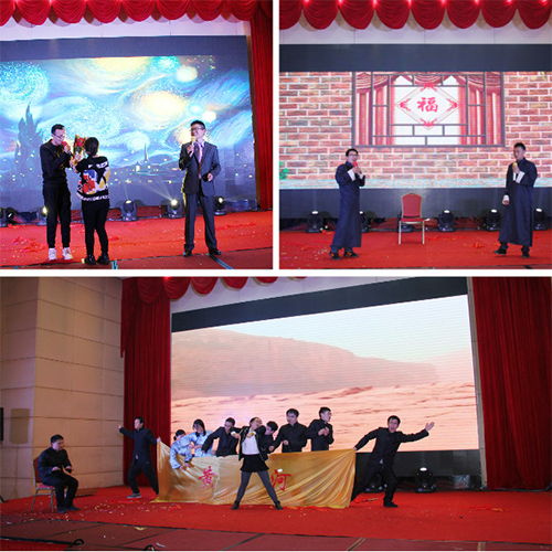 精彩紛呈的“新故事,新起點”2016新春年度盛典在四位支持人的深情開場中拉開序幕。熱情歡樂《金獅送!奉I先開演,為大家送來了新年的祝福;勁舞《說愛就愛》,激情火爆,樂觀向上的精神風貌展現得淋漓盡致;研發團隊的舞臺劇《電影院那些事》演繹了公司研發人員豐富飽滿的內心世界。一首《飄雪》,瞬間將我們就帶入了純情浪漫模式。古箏演奏,優雅悠揚;激情昂揚的《保衛黃河》將整個晚宴推向高潮;銷售部老男人們的《群魔亂舞》讓大家更是樂的開懷暢飲!期間的互動環節及歡樂大抽獎讓全場氛圍熱烈而又充滿期待,高潮迭起!