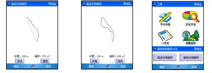 C,地圖功能:地圖包含2000多個縣市區電子地圖,可用做背景信息參考,和采集GPS坐標在地圖上顯示等功能。可在地圖上測量2點之間的距離或封閉的圖形。