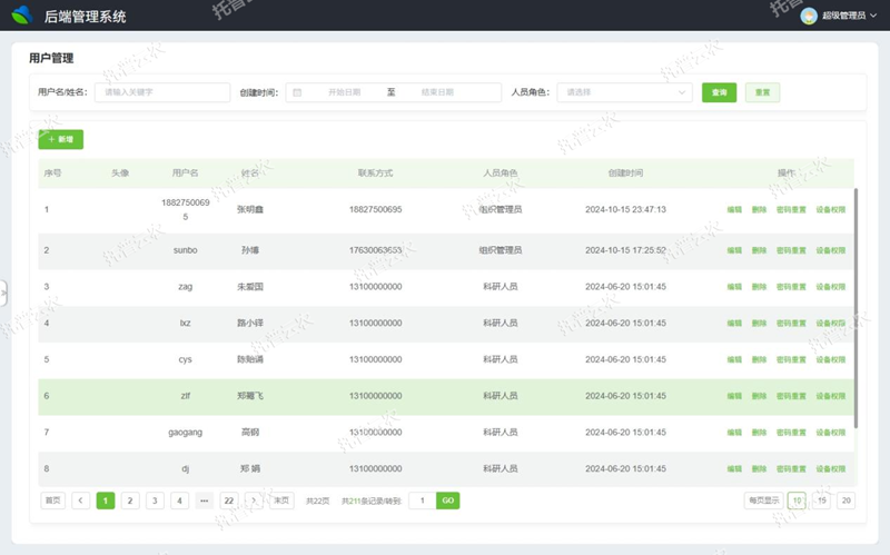 (1)科研數據管理:支持課題數據、品種數據、種植數據、試驗數據錄入,支持數據增刪改查;支持圖片jpg格式,視頻MP4格式上傳;支持數據展示在駕駛艙大屏端;支持人工氣候室種植使用數據系統自動計算;